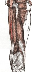 Semimembranosus: der Semimembranosus ist einer der beiden Muskeln der inneren Ischiocruralen Gruppe (der andere ist der Semitendinosus), der vom ischial tuberosity zum Pes anserinus zieht. Er verursacht eine Extension des Hüftgelenks und eine Flexion des Kniesgelenks. Außerdem endorotiert er den Unterschenkel im Kniegelenk (nur wenn dieses gebeugt ist).