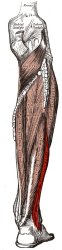 Fibularis brevis: der Fibularis brevis ist Pronator des Fußgelenks und Synergist bei der plantaren Flexion des Fußgelenks. Er hieß früher auch: peronaeus brevis. Sein Ursprung ist wie der des Fibularis longus lateral an der Fibula, jedoch weiter distal.
