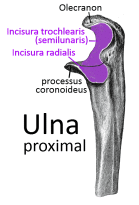 Olecranon: das Olecranon ist der Knochenvorsprung, der um den Gelenkbereich des Humerus im Humeroulnargelenk (eins der drei Teilgelenke des Ellbogengelenks) greift.